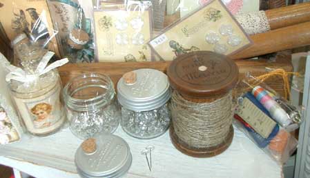 #march297 ホービス焼き型入りビスケット \1500Sold Out(縦17cmx横9cmx高8cm) 賞味期限:2008/7/19 原産国イギリス | #march298 ビン入りプッシュピンSold Out 直系6.5cm ボビンソーイングセット \940SOLD OUT 麻の巻かれたボビンに はさみや 針などが入っています |