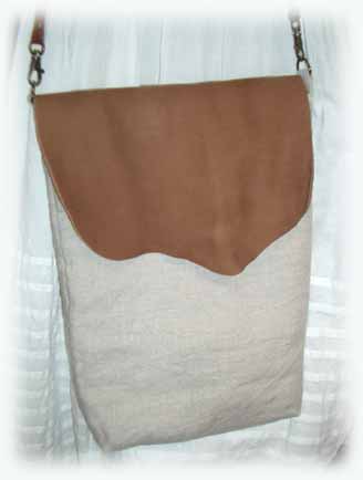 #feb2017 レザー&リネンのショルダーA \6800(縦33cmx横25cmxまち6cm) たっぷり入るのが便利 | #feb2018 レザー&リネンのショルダーB \5800 (縦21cmx横27cmxまち11cm) スエードに花のモチーフ |