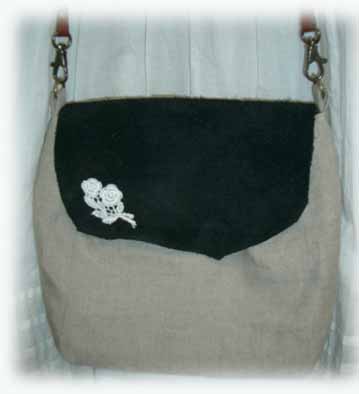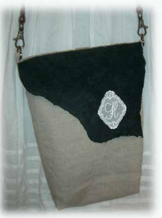 #feb2019 レザー&リネンのショルダーC \5800 (縦25cmx横20cmxまち5cm) スエードにイニシャルモチーフ | #feb2020 コットン&リネンのショルダーD \3800(縦26cmx横18cmxまち4.5cm) フィレレースが綺麗です。 |