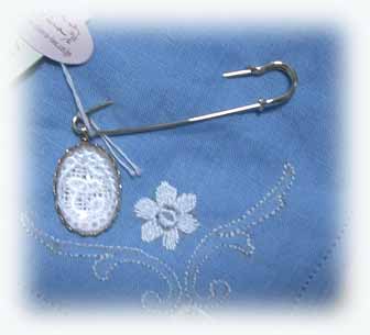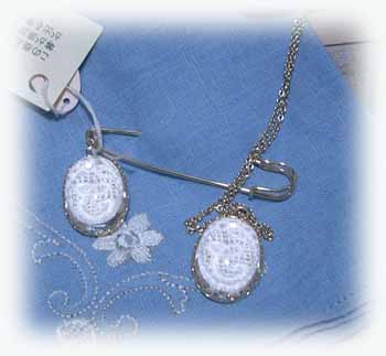 #feb209 イニシャルモチーフブローチ \1890 Sold Out 縦2.4cm クリアーなアクリルの ドームで覆われています。 |