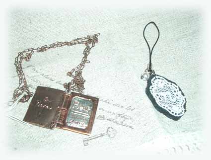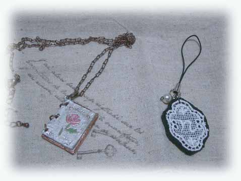 メダイやコインやバレリーナ等の チャームが付いています。 | 中はリネンにプリントしています。 |