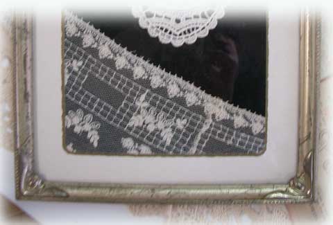 | #frame013 ¥5000SOLD OUT (D21cm x H26cmが二連) | アンティークのレースや モチーフなどを ディスプレイしています。 |