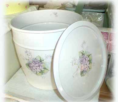 ★スミレ・バケツ缶 【フレックス】 価格 \10.500(税込) 約直径25.7(W28.8)×H24cm ホーロー製 アメリカの大きなポップコーン缶のような 平たいフタが新鮮な収納バケツです。 かなり厚手フタは上に物が置いてもOK!。 柄は、両サイドと、バケツの中に小さく2箇所あります。 しっかりと厚手の蓋は トレーとしても 使えそうです。 |