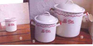 ★ヘリテージ ホーロー製★ 1)201-0410 キャニスターM RD \2940(\2800)Ф10.3xH15.5cm 2)201-0409 キャニスターS RD \2625(\2500)Ф9xH13cm 3)201-0403 ツール立て RD \2310(\2200) Ф12.5xH14.6cm 4)201-0412 足つき片手コランダーRD \3675(\3500) W31xH8.5cm 5)201-0406 シンクポット丸 RD \3885(\3700) Ф12.5xH16.5cm 6)201-0405 両口ミルクパン RD \4725(\4500) W28.5xH9cm 7)201-0402 キャセロール15cm RD \4095(\3900) W21xH11.5cm |