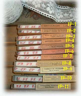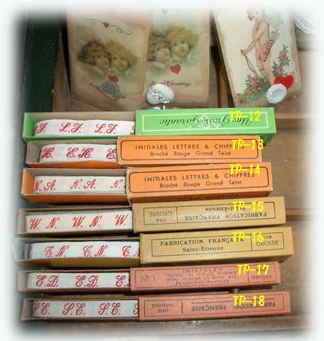 | #TP-1〜TP-11 ALL SOLD OUT 各¥1500All SOLD (幅8mm 長さ約150cm) 商品説明です Rubans tres anciens d'initiales brodees rouge pour toutes vos creations. (Monogramme) En coton blanc brode de rouge. Les rubans brodes se font de plus en plus rares! | #TP-12〜TP-18 各¥1500 (幅1cm 長さ約150cm)ALL SOLD OUT 箱などに少し傷みが有るものも有りますが テープは とてもよい状態です。 商品説明です Rubans tres anciens d'initiales brodees rouge pour toutes vos creations. (Monogramme) En coton blanc brode de rouge. Les rubans brodes se font de plus en plus rares! |